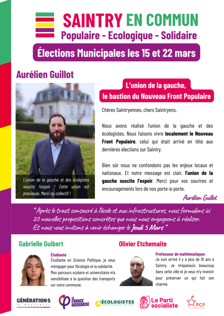 Nous avons créé un collectif ouvert qui s’appelle malicieusement “Saintry Tomate Union” pour réunir les valeurs de gauche dans l’élan joyeux et conquérant du Nouveau Front Populaire en 2024.
