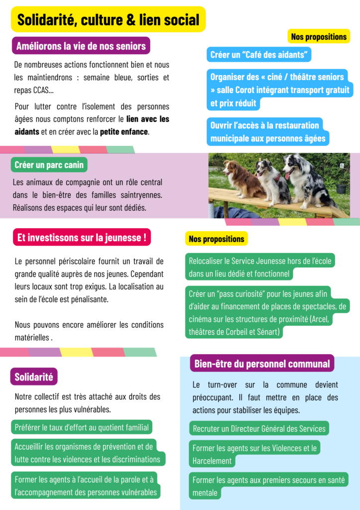 Nous voulons rassembler les forces progressistes, humanistes et écologistes de notre commune au-delà des étiquettes partisanes pour redonner du sens à I’action municipale : Solidarité, justice sociale, démocratie locale et transition écologique.